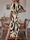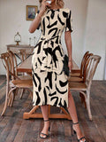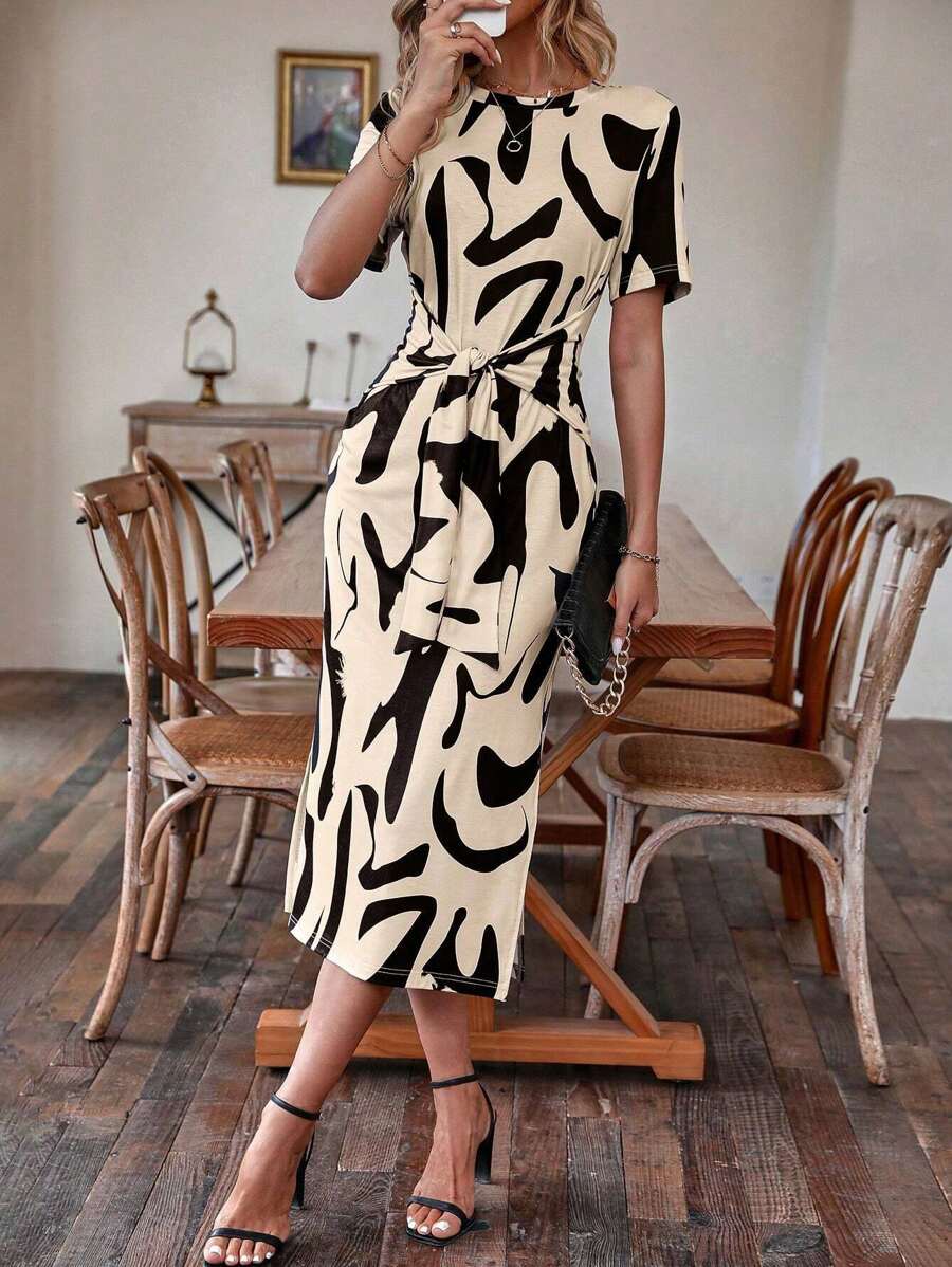 Alonic Fab Abstract Print Tie-Up Waist Midi Dress