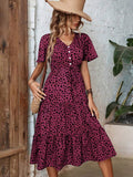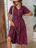 Bring effortless charm to your wardrobe with this Berry Magenta Polka Dot Midi Dress. Designed with a playful all-over dot print, this dress combines comfort and style in the most flattering way. The V-neckline with button detailing adds a touch of elegance, while the drawstring waist lets you adjust the fit to perfection.