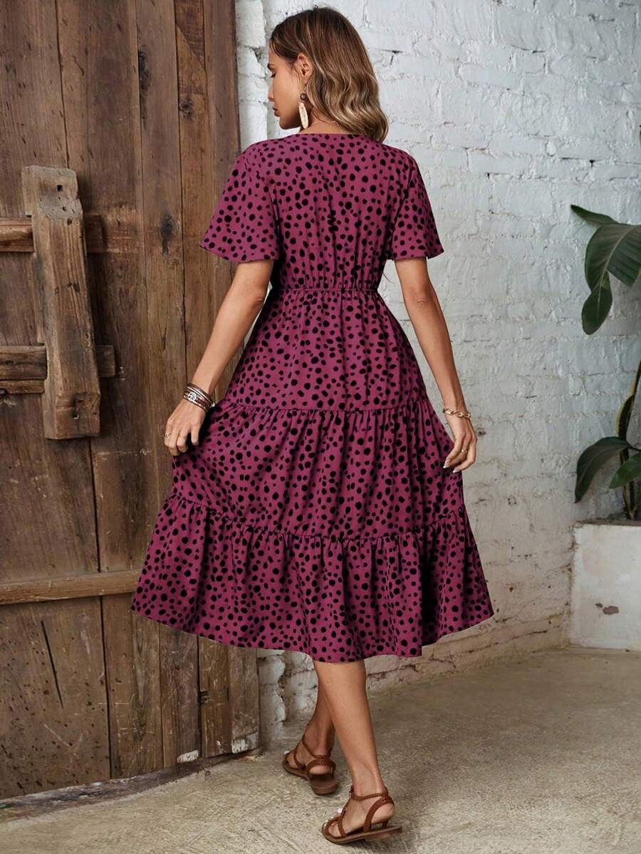 Alonic Fab Berry Bliss Polka Dot Midi Dress