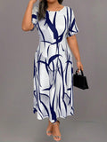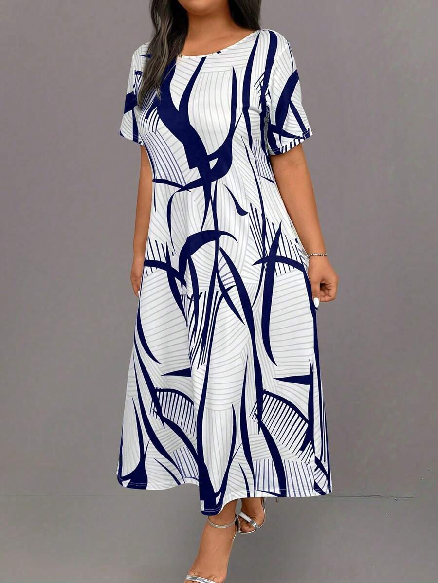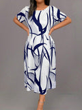 Alonic Fab Women's casual midi dress with a modern abstract print