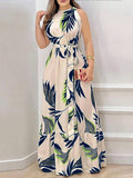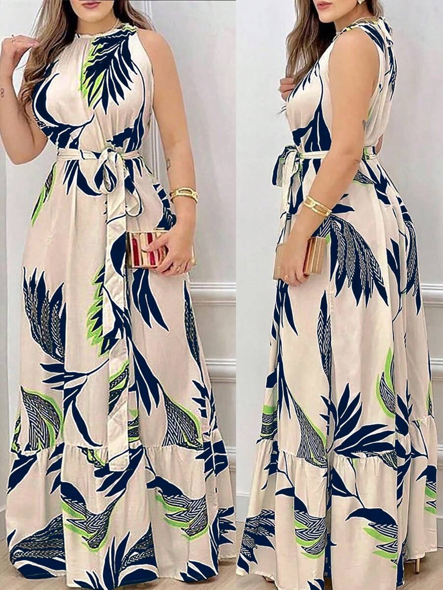 Alonic Fab Women's Casual Sleeveless Dress with Botanical Print