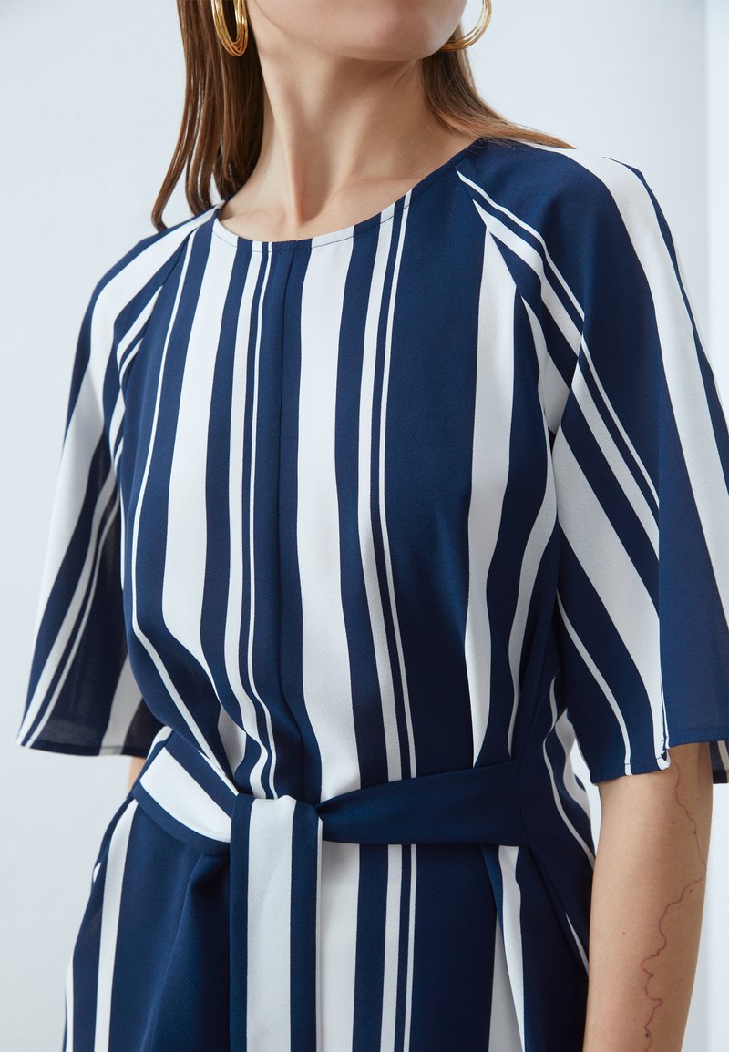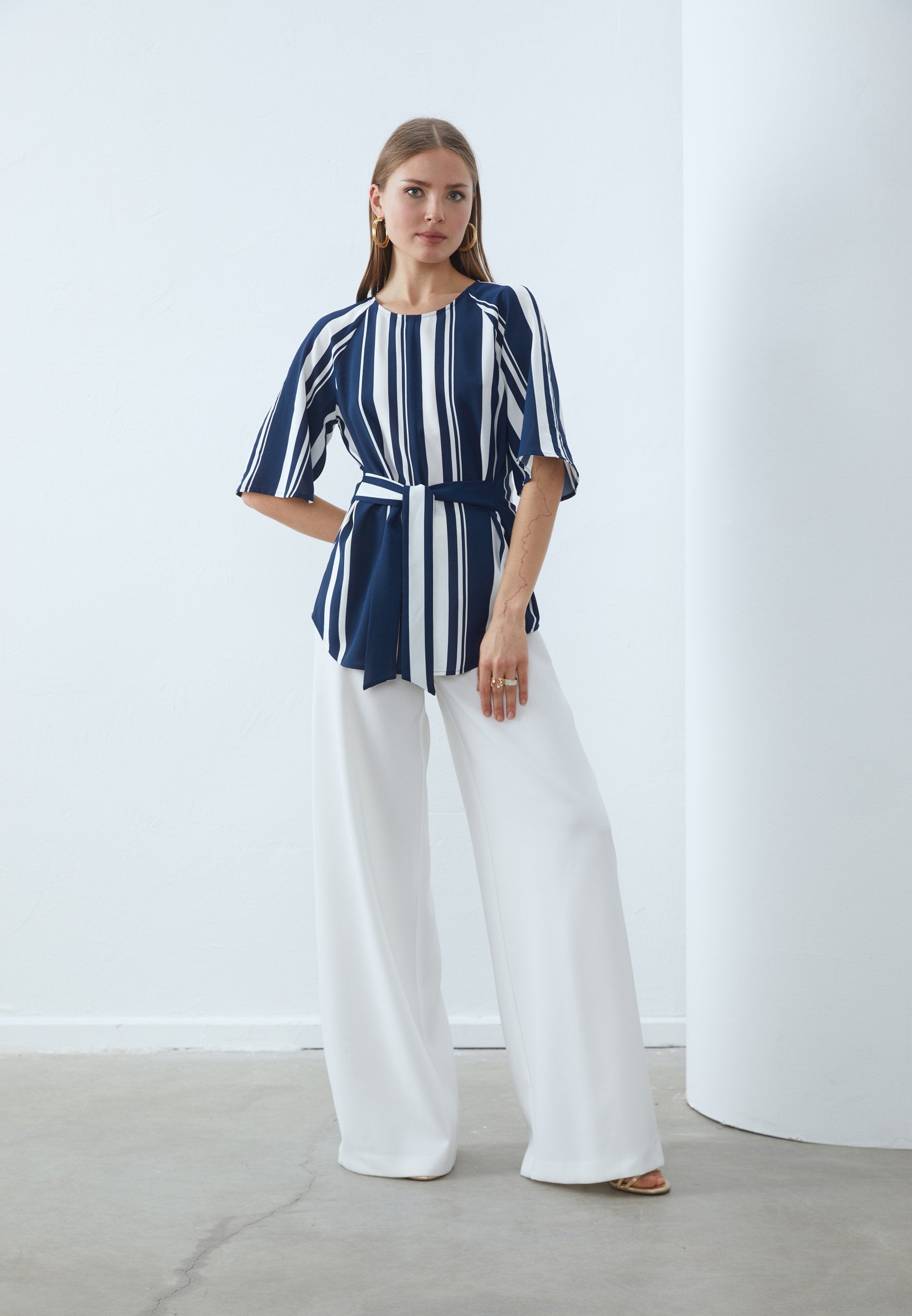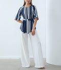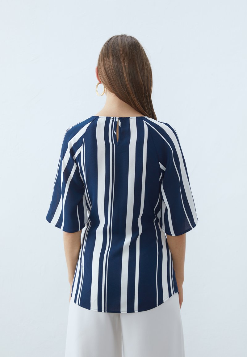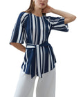 Alonic Women's Navy Blue and White Striped Peplum Top