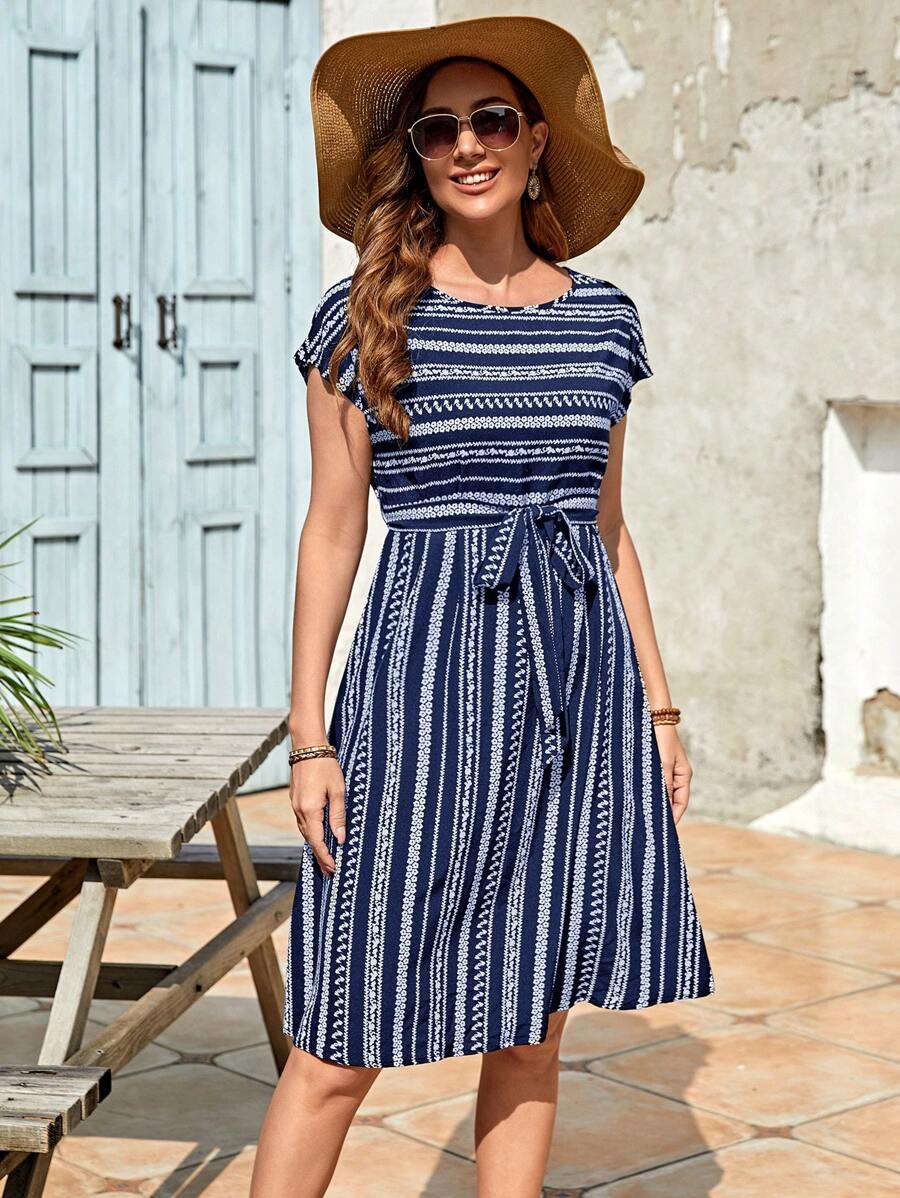 Crafted from soft, breathable fabric, it feels light on the skin—perfect for warm days and long hours. The round neckline and short sleeves give it a timeless look, making it ideal for casual outings, office wear, travel, or brunch dates.
